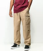 Empyre Loose Fit Khaki Cargo Skate Jeans