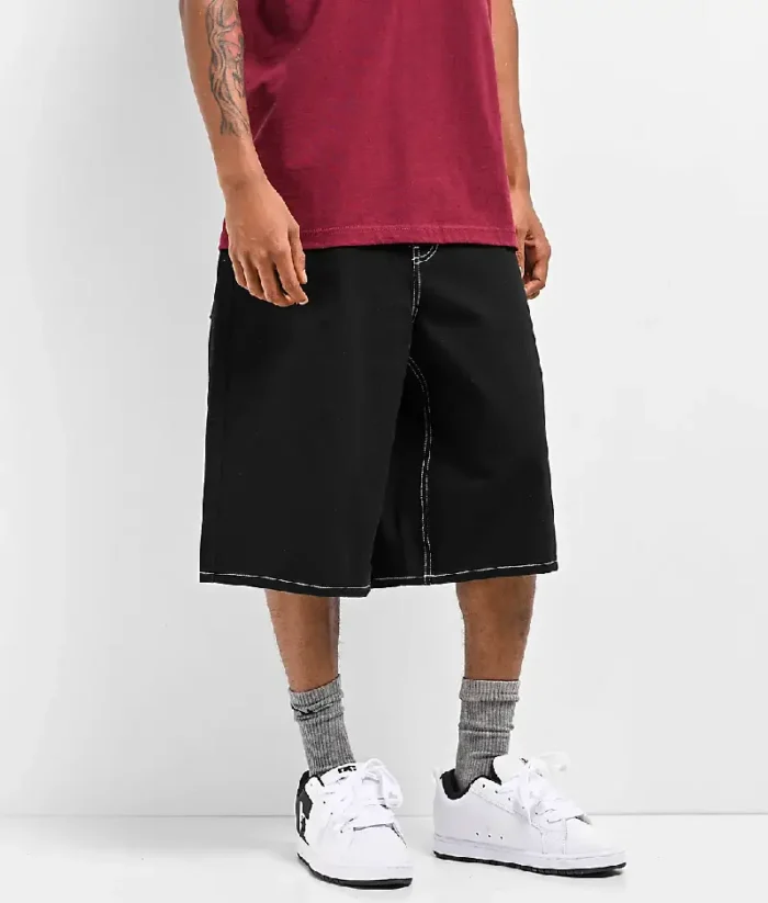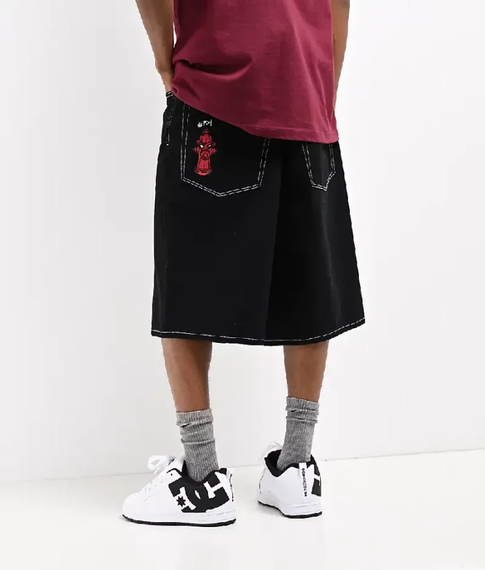 Empyre Ultra Loose Black Denim Skate Shorts Black